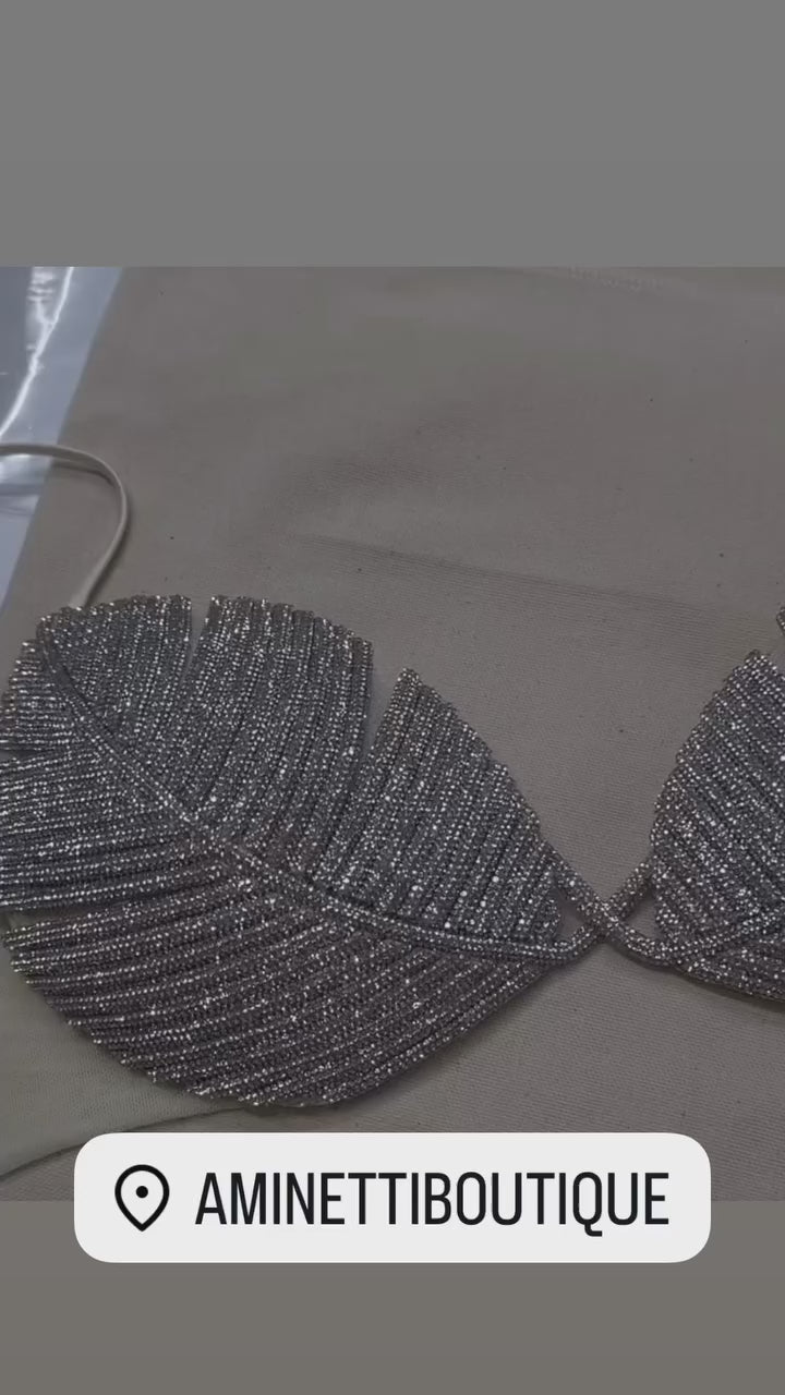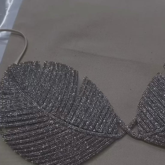 Lusso e sensualità si incontrano in questo crop top impreziosito da cristalli Swarovski. Taglia unica, pensato per adattarsi perfettamente grazie alla chiusura a gancio stile reggiseno che lo rende completamente regolabile.